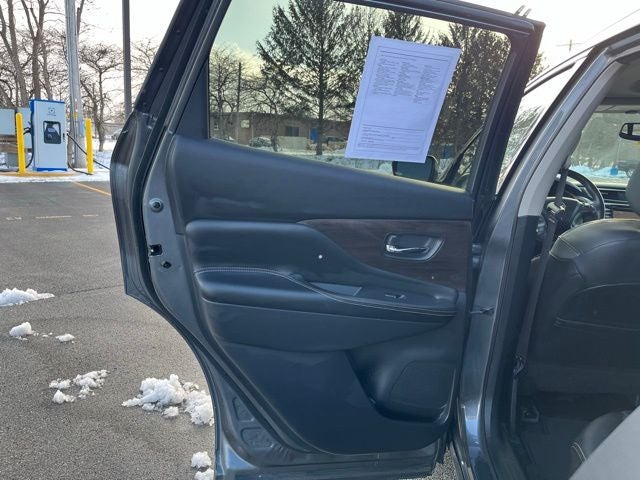 AM/FM/CD/MP3/WMA Audio System, Auto-dimming Rear-View mirror, Child-Seat-Sensing Airbag, Emergency communication system: NissanConnect Services (first 6 months included), Exterior Parking Camera Rear, Garage door transmitter: HomeLink, Heated & Ventilated Front Bucket Seats, Heated door mirrors, Heated steering wheel, Low tire pressure warning, Memory seat, Navigation system: NissanConnect Navigation, NissanConnect featuring Apple CarPlay and Android Auto, NissanConnect Services Powered By SiriusXM, Occupant sensing airbag, Outside temperature display, Power driver seat, Power Liftgate, Power moonroof, Rear window defroster, Security system, Speed control, Turn signal indicator mirrors, Wheels: 20 Unique Dark Hyper Silver.